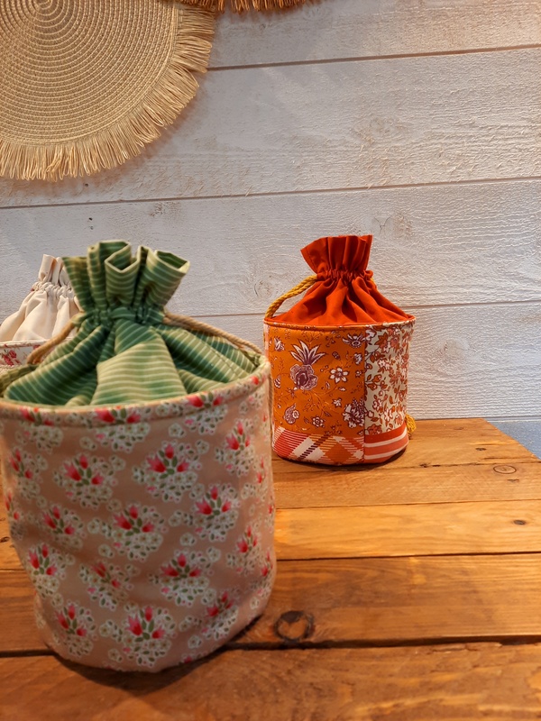 Vous pourrez mettre dans ce petit pochon des accessoires de salle de bain ( lingettes réutilisables, barrettes, maquillage…) dans le salon comme vide poche, dans la cuisine pour vos fruits à coque…, dans le sac à langer de bébé…