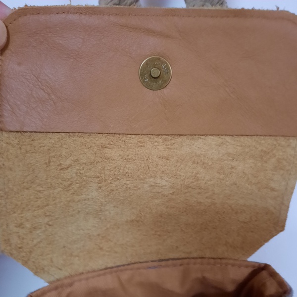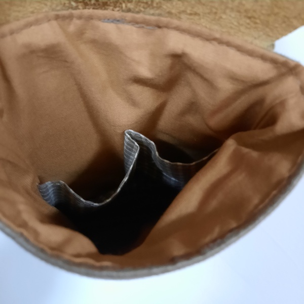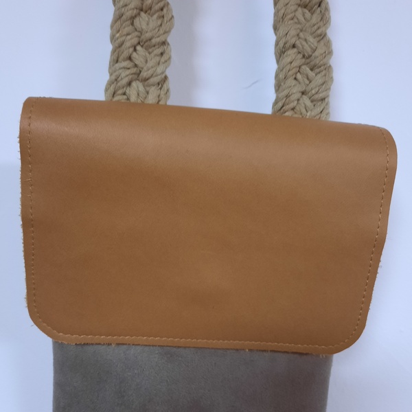 Petite sacoche téléphone à porter en bandoulière. Tissus suédine couleur taupe de très bonne qualité et rabat en cuir véritable marron clair, qui se ferme avec un aimant. Vous y mettrez le nécessaire ( téléphone, carte bancaire, porte monnaie…) La sangle est en coton tressée. L’intérieur de votre sacoche téléphone est en coton et comporte deux petites poche pour mettre des cartes bancaire ou autres.